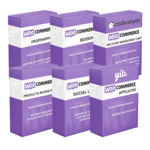 O Pack para WooCommerce é uma coleção abrangente de 6 plugins cuidadosamente selecionados para transformar sua loja WooCommerce em uma máquina de comércio eletrônico de alto desempenho. Com este conjunto, você terá acesso a uma gama de recursos poderosos que ampliam significativamente a funcionalidade do seu site.